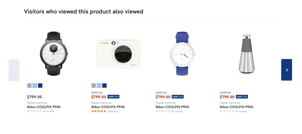 The product page should include recommendations such as “Customers who viewed this product also viewed”.