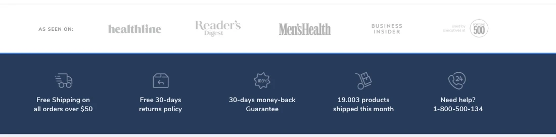 Clear information about returns, refunds, and money-back guarantees should be displayed near the purchase area to reduce purchase hesitation.
