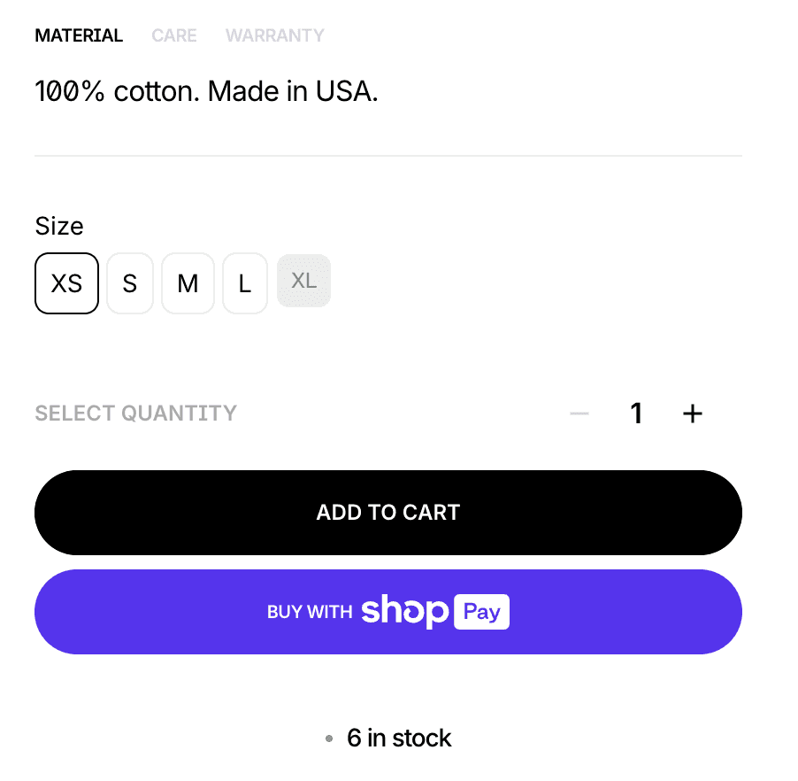 Product variants such as size or color should be easy to select on mobile and large enough to prevent accidental clicks.