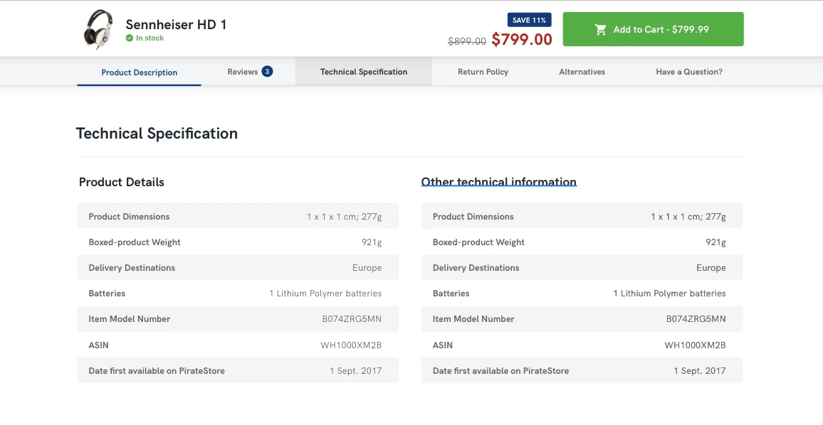 The product page should clearly indicate product availability, including messages such as “In stock” or “Low stock”.