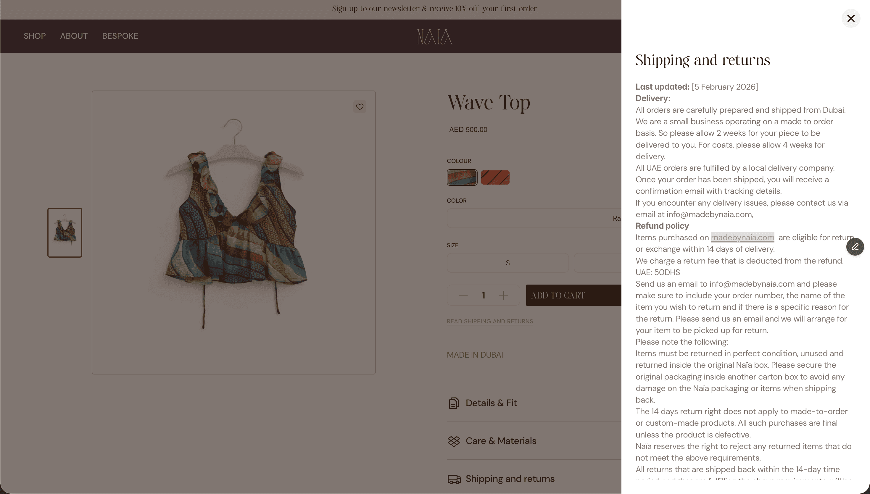 All shipping information is shown near the main CTA including delivery location or shipping destination.