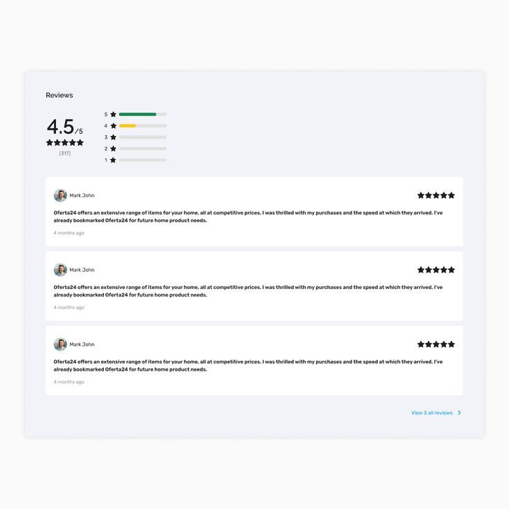 Customer reviews visually stand out from other content, ideally using a highlighted background.